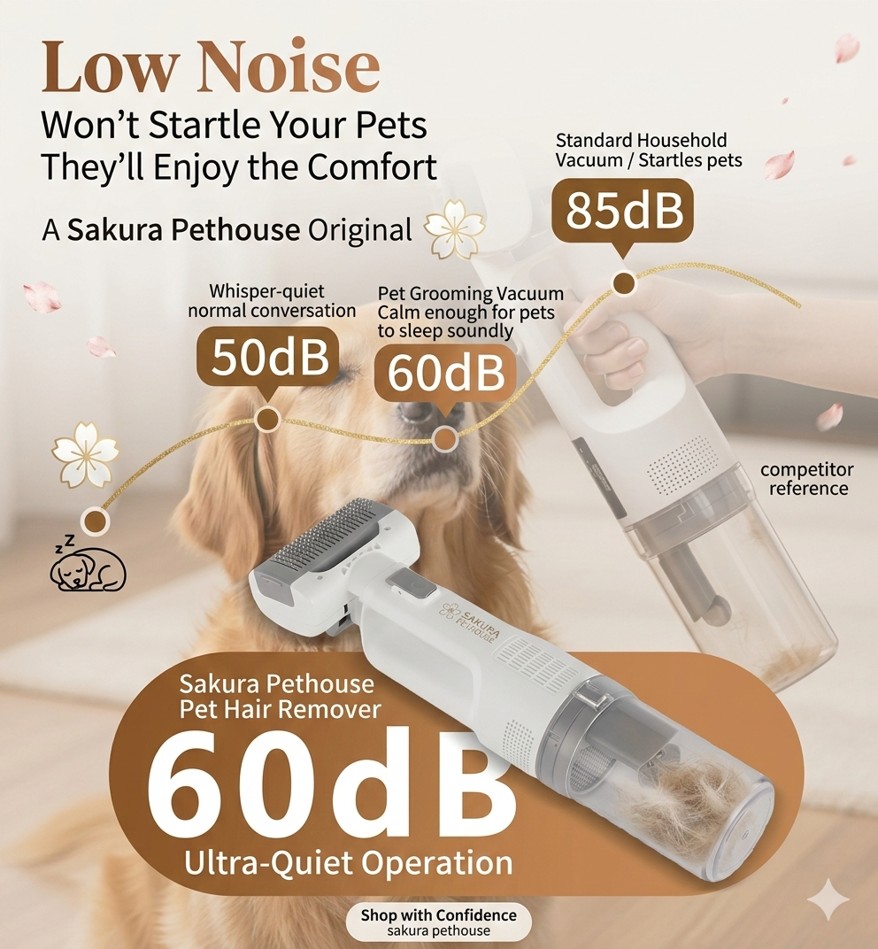 Whisper-Quiet Acoustic Engineering: Operating under 60dB with three adjustable levels, the dynamic noise-reduction technology prevents "vacuum anxiety" and keeps your pet calm.